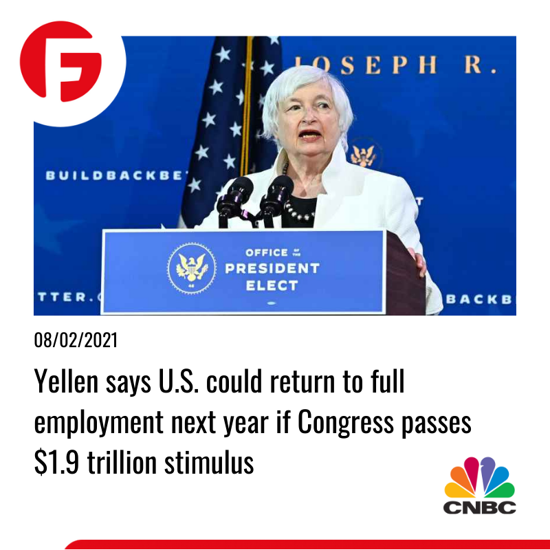 سطح بیکاری در ایالات متحده در حال نزدیک شدن به اوج تاریخی است. احتمال می رود تا نرخ بیکاری در صورت عدم تصویب محرک مالی برای سالهای آینده همچنان بالا بماند. جانت یلن، وزیر خزانه داری آمریکا گفت: ایالات متحده می تواند در صورت تصویب لایحه محرک مالی 2 تریلیون دلاری، نرخ اشتغال را تا سال 2022 به روند معمول برگرداند. ایشان اضافه نمود: هیچ دلیلی برای تحمل این بحران وجود ندارد. یلن همچنین گفت که نگرانی های مربوط به افزایش تورم و ریزش قیمت دلار بیهوده است. ایالات متحده ابزار زیادی را برای مقابله با تورم در اختیار دارد.