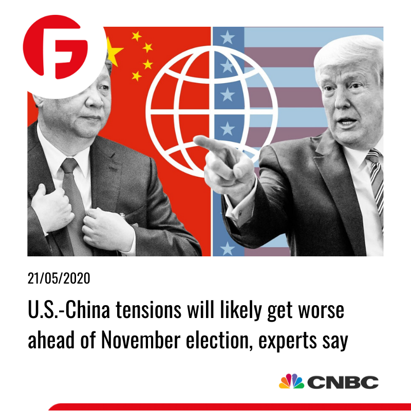 کارشناسان روز پنجشنبه به CNBC گفتند که تنش ها بین ایالات متحده و چین احتمالاً پیش از انتخابات ریاست جمهوری آمریکا در ماه نوامبر بدتر می شود. دو اقتصاد بزرگ جهان درگیر جنگ تجاری طولانی مدت شده اند و اکنون درگیر مشکلات پیرامون شیوع ویروس هستند. رئیس جمهور آمریكا، دونالد ترامپ پكن را به دلیل عدم شفافیت در مورد اطلاعات واقعی شیوع Covid-19، محکوم می کند. در پاسخ پکن اظهار دارد كه آمریكا می تواند منبع واقعی ویروس باشد. استفان روچ، استاد ارشد دانشکده یل، گفت: با توجه به فعالیت های ترامپ برای دوره دوم ریاست جمهوری، "بازی نهایی برای دولت ترامپ واضح است - و این پیروزی در انتخابات آتی می باشد." وی گفت: "این به معنای بهبود امنیت اقتصادی آمریکا است. این یک درگیری تجاری با انگیزه سیاسی است. ترامپ روز چهارشنبه در توئیتر، چین را به عنوان دلیل منشاء ویروس شمرد و گفت که این "ناسازگاری چین" است که باعث " کشتار جمعی در سراسر جهان" شد. وزیر امور خارجه مایك پومپئو روز چهارشنبه اظهار داشت كه 2 میلیارد دلار کمک پكن به منظور مبارزه با این بیماری در مقایسه با صدها هزار نفر از دست رفته و تریلیون ها دلار خسارت وارد شده "مبهم" است.