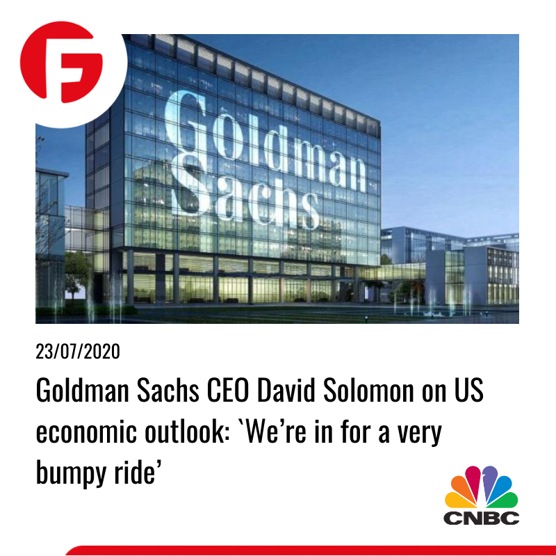 دیوید سالامون، مدیرعامل گلدمن ساکس، روز چهارشنبه اظهار داشت که اقتصاد ایالات متحده از بیکاری زیاد و بهبودی کند که به دلیل قرنطینه رخ داد، رنج می برد. "واقعیت اقتصادی این است که ما هنوز با یک فضای اقتصادی بسیار نامشخص روبرو هستیم." در هفته های اول پس از پایان موج اول بیماری، با افزایش فعالیت اقتصادی رو به رو بودیم، که به با شیوع موج جدید بسیاری از ایالات صنعتی را مجبور به تعلیق یا لغو برنامه های خود نمود. میلیون ها بیکار با پایان یابی به زود مزایا روبرو هستند و قانون گذاران در مورد محرک اقتصادی بعدی در حال بحث و گفتگو می باشند. "من فکر می کنم طی دو ماه آینده این روند کند خواهد شد، فکر می کنم شاخص های اقتصادی پایین خواهند رفت." وی افزود که ایالات متحده برای مدت طولانی از بیکاری بسیار زیاد رنج خواهد برد. " حتی بعد از ایجاد واکسن. هنوز بازار نسبت به این واقعیت که نرخ بهره صفر نیست، واکنش نشان می دهند و اعتقاد زیاد به اختصاص دوباره محرک اقتصادی افزایش فعلی قیمت سهام را منجر شده. وی گفت: "من فکر می کنم برای یافتن راه خروج، زمان زیادی لازم است."