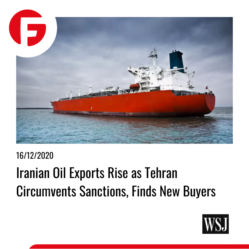 ایران طی ماه های اخیر تحریم های ایالات متحده را نادیده گرفته و نفت بیشتری را به چین و سایر کشورها صادر کرده است. این باعث پشتیبانی نسبی از اقتصاد می شود و احتمال تضعیف آتی قیمت نفت را نیز افزایش می دهد. این مساله با توجه به خروج ترامپ از سیاست، کمپین تحریم علیه تهران را تضعیف می کند. البته اندازه گیری میزان فروش نفت ایران با توجه به ماهیت پنهان آن دشوار است. چندین شرکت که تجارت جهانی که تغییرات حجم ذخایر و صادرات نفت را رصد می کنند می گویند میزان حمل و نقل از ایران نسبت به اوایل سال جاری تقریباً دو برابر شده است.