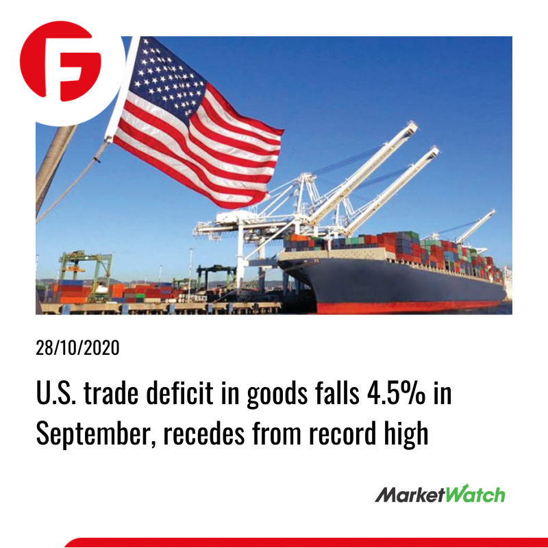 کسری تجاری ماه سپتامبر ایالات متحده کاهش یافت. البته احتمالاً در چند ماه آینده همچنان افزایش خواهد یافت. ولی حتی با این وجود به موازات ریزش یورو و پوند، به دلیل ترس از تحمیل قرنطینه در سطح اتحادیه اروپا، قیمت دلار نسبت به دیگر ارز ها افزایش قابل توجهی پیدا کرد. کسری تراز تجاری ایالات متحده با توجه به کندی بهبود اقتصادی در بسیاری از مناطق دیگر، در کوتاه مدت آماده است که بسیار بالا بماند. البته آمریکایی ها توانایی خرید کالاهای خارجی بیشتری را دارند. بهبود کندتر صادرات، به نوبه خود، به عنوان یک فشار کوچک در بهبود روند تولیدات ایالات متحده در آینده عمل خواهد کرد.
