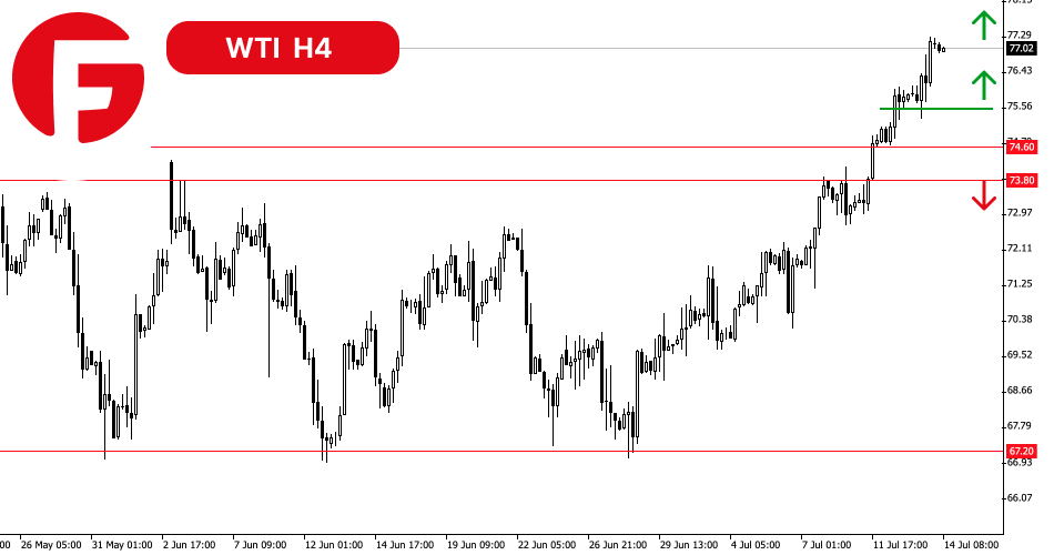 پس از شکست و تثبیت قیمت های نفت خام WTI بالاتر از ناحیه مقاومتی 73.80 تا 74.60 دلار، فعالیت خریدار همچنان بالاست. به یاد بیاورید که سطح مقاومت فنی قوی بعدی 82.20 دلار است. بر این اساس، پتانسیل رشد هنوز بسیار زیاد است.
