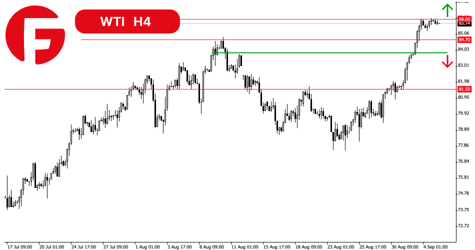 در زمان نوشتن این تحلیل، قیمت نفت خام WTI نزدیک به سطح مقاومت فنی 86.00 دلار بود. شکست این سطح راه را به سمت 93.50 دلار باز میکند. در راه رسیدن به هدف مشخص شده، یک سطح مقاومتی دیگر، یعنی 89.00 دلار وجود دارد.