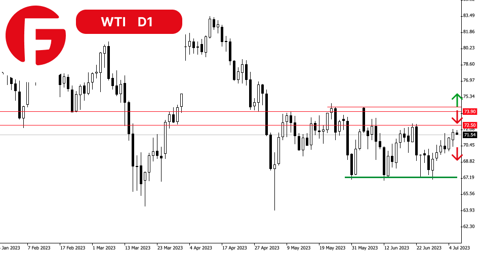 قیمت نفت خام WTI به اولین سطح مقاومتی قوی یعنی 72.50 دلار نزدیک شده است. اما محدوده قیمتی باریک 73.90 تا 74.30 دلار مانع مهمتری بر سر راه گاوها است. تا زمانی که این محدوده شکسته نشود، قیمت نفت بین 67.00 تا 74.30 دلار ثابت می ماند که این به نوبه خود نشان دهنده عدم اطمینان بازار است.