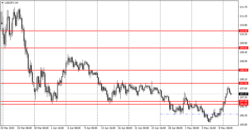 دستیابی به بازه مقاومت 106.85-107.00 موج رشد نسبتاً قوی را برانگیخت. شکست 107.90 احتمال تقویت بیشتر قیمت را افزایش می دهد. این جفت ارزی بالاتر از سطح پشتیبانی 107.30 استقرار داشته و دستیابی به آن می تواند راه را به 107.00 باز کند، اما این شکست به عنوان یک سیگنال فروش عمل نمی کند.