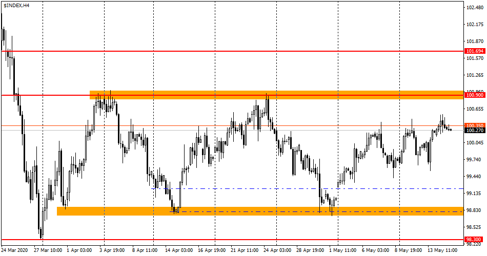 شاخص دلار آمریکا هیچ تغییر قابل توجهی نکرده است، ما همچنان نوسانات متوسط و عدم وجود حرکت قیمت یک طرفه را مشاهده می کنیم. همه اینها نشان از عدم اطمینان معامله گران و سرمایه گذاران می باشد. دلیل این امر این است که تعیین توانایی اقتصاد ایالات متحده برای بهبودی پس از پایان قرنطینه بسیار دشوار است و درک دقیقی از تاریخ دقیق اتمام قرنطینه وجود ندارد.